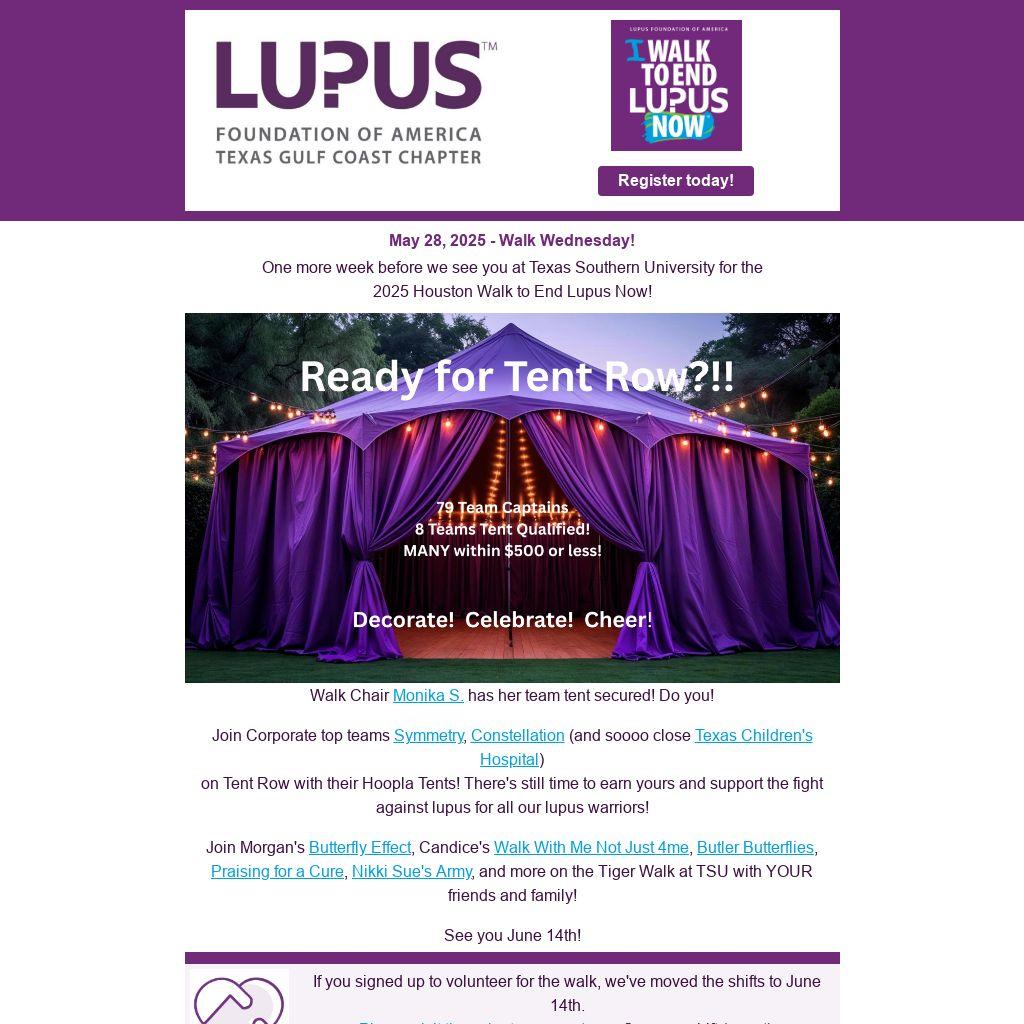 | If you signed up to volunteer for the walk, we've moved the shifts to June 14th.