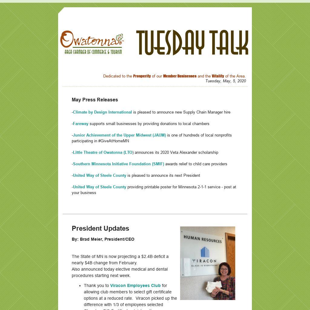 How to Safely Return to Work and ReOpening Business resources are on our COVID-19 page at owatonna.org