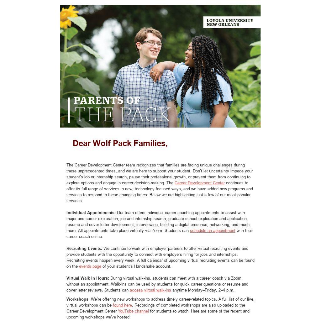 Questions about any of these programs, services, or resources? Want to learn more or connect your student with a career coach? Email us at career@loyno.edu. We look forward to working with your student!