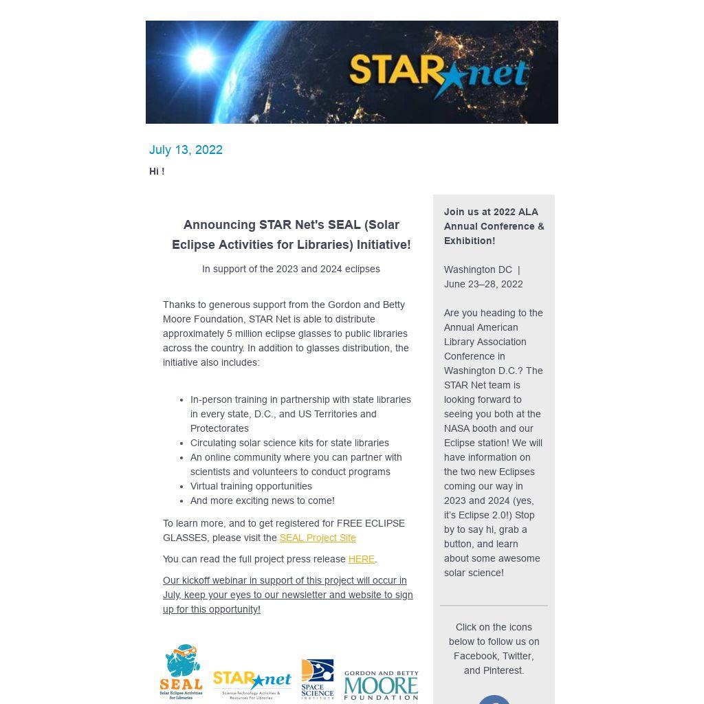 Announcing STAR Net's SEAL (Solar Eclipse Activities for Libraries) Initiative!