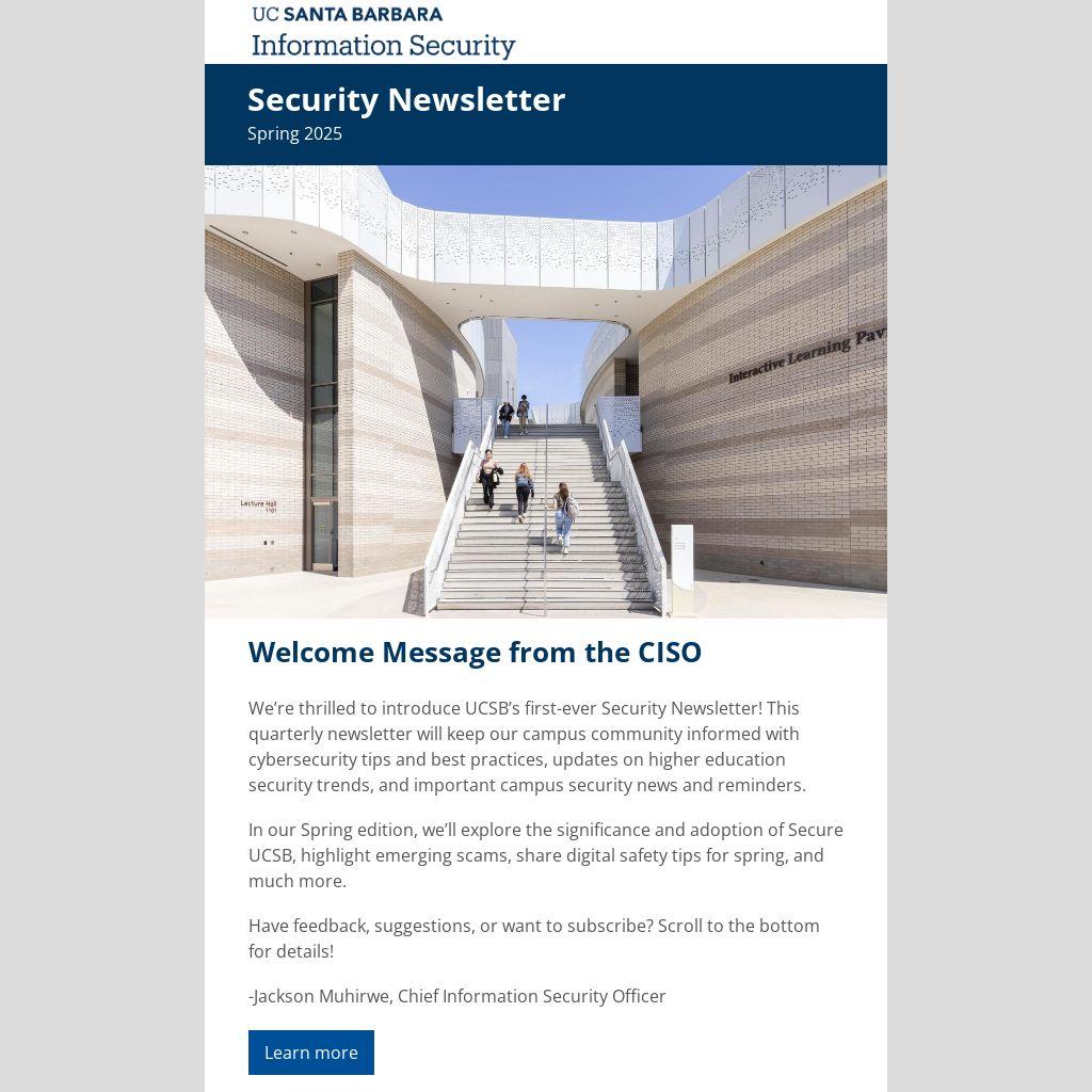 In our Spring edition, we’ll explore the significance and adoption of Secure UCSB, highlight emerging scams, share digital safety tips for spring, and much more.