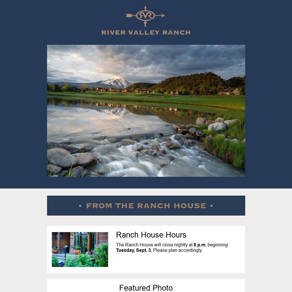The Ranch House will close nightly at 8 p.m. beginning Tuesday, Sept. 3. Please plan accordingly.