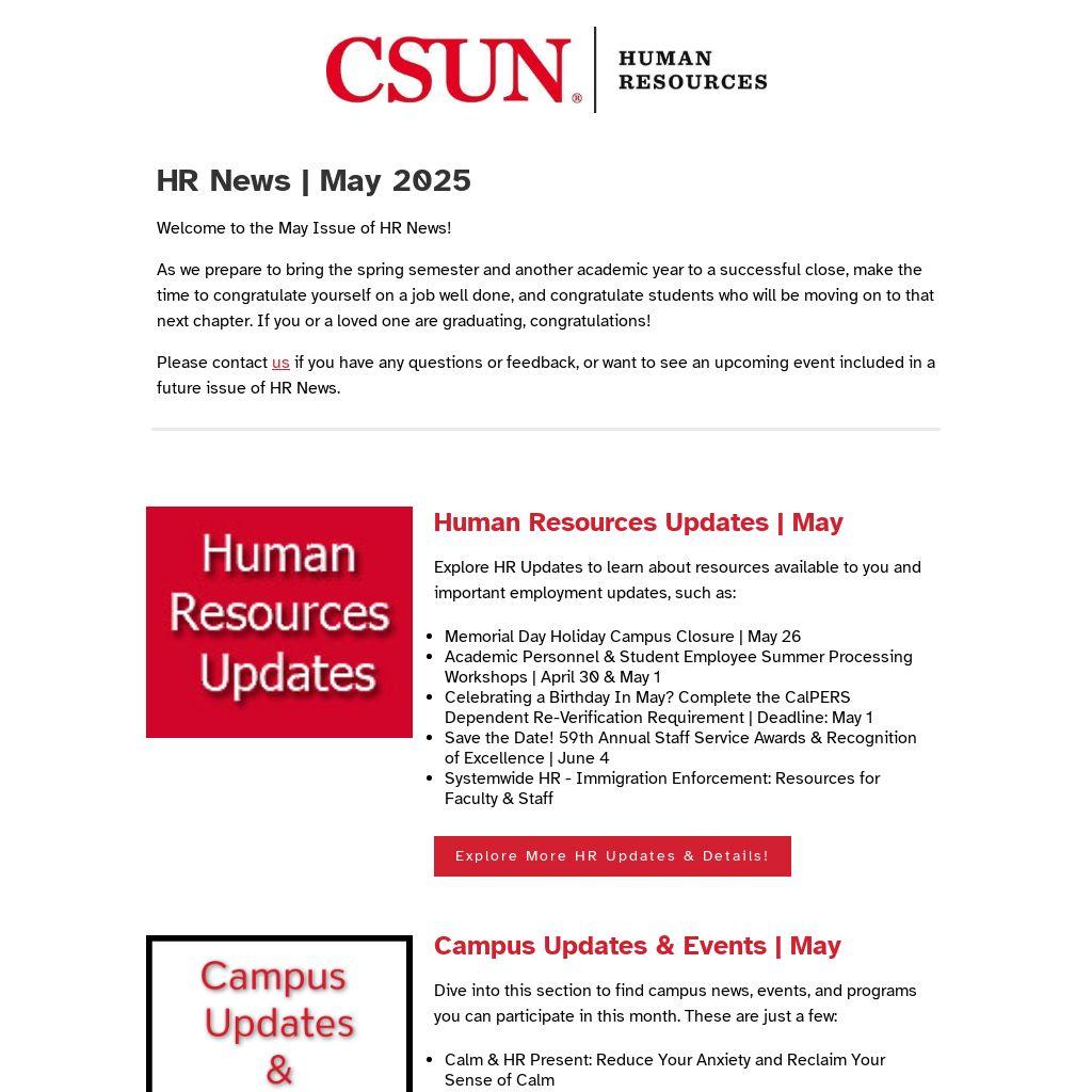 Welcome to the May Issue of HR News!