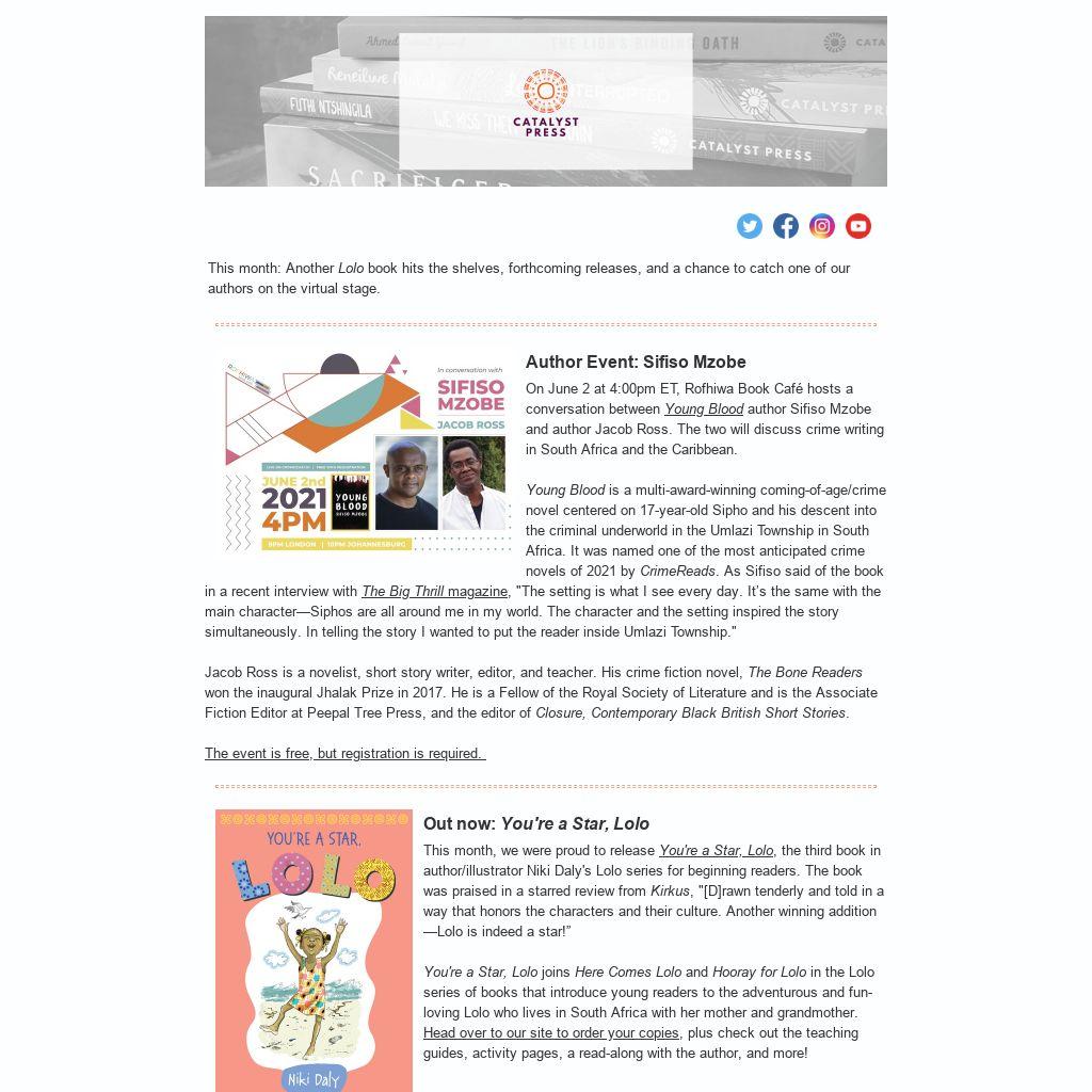You're a Star, Lolo joins Here Comes Lolo and Hooray for Lolo in the Lolo series of books that introduce young readers to the adventurous and fun-loving Lolo who lives in South Africa with her mother and grandmother. Head over to our site to order your copies, plus check out the teaching guides, activity pages, a read-along with the author, and more!