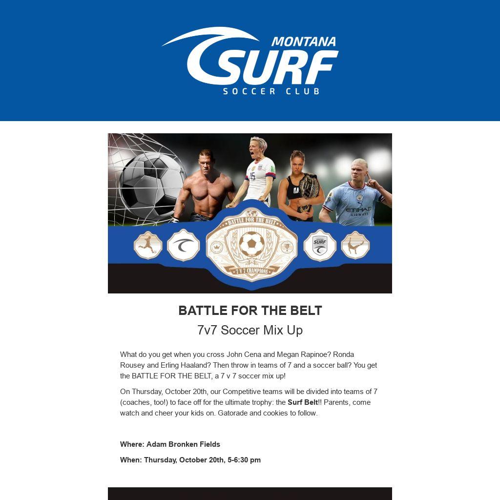 What do you get when you cross John Cena and Megan Rapinoe? Ronda Rousey and Erling Haaland? Then throw in teams of 7 and a soccer ball? You get the BATTLE FOR THE BELT, a 7 v 7 soccer mix up!