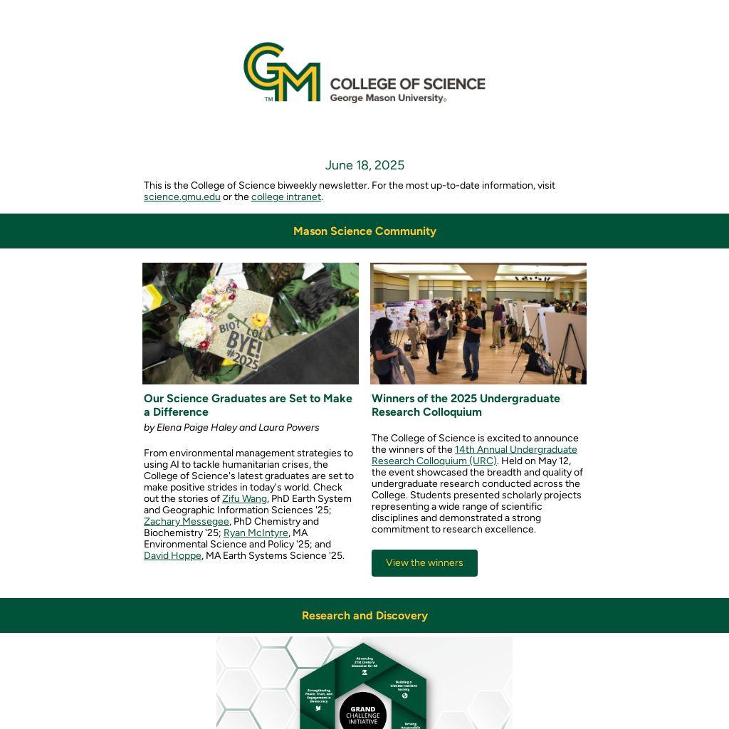 We’re excited to support the George Mason Grand Challenge Initiative—a bold, university-wide effort to spark interdisciplinary solutions to society’s most urgent and complex problems. This initiative represents an outstanding opportunity for our Mason community to help shape the future of research, innovation, and impact.