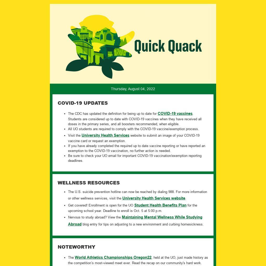 Be sure to check your UO email for important COVID-19 vaccination/exemption reporting deadlines.