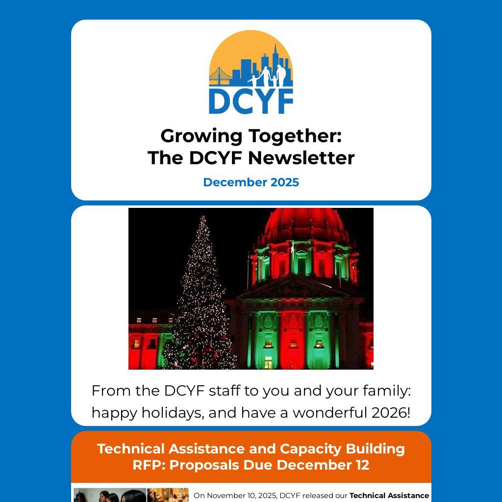 On November 10, 2025, DCYF released our Technical Assistance and Capacity Building Request for Proposals (RFP). The RFP seeks experienced proposers to provide: