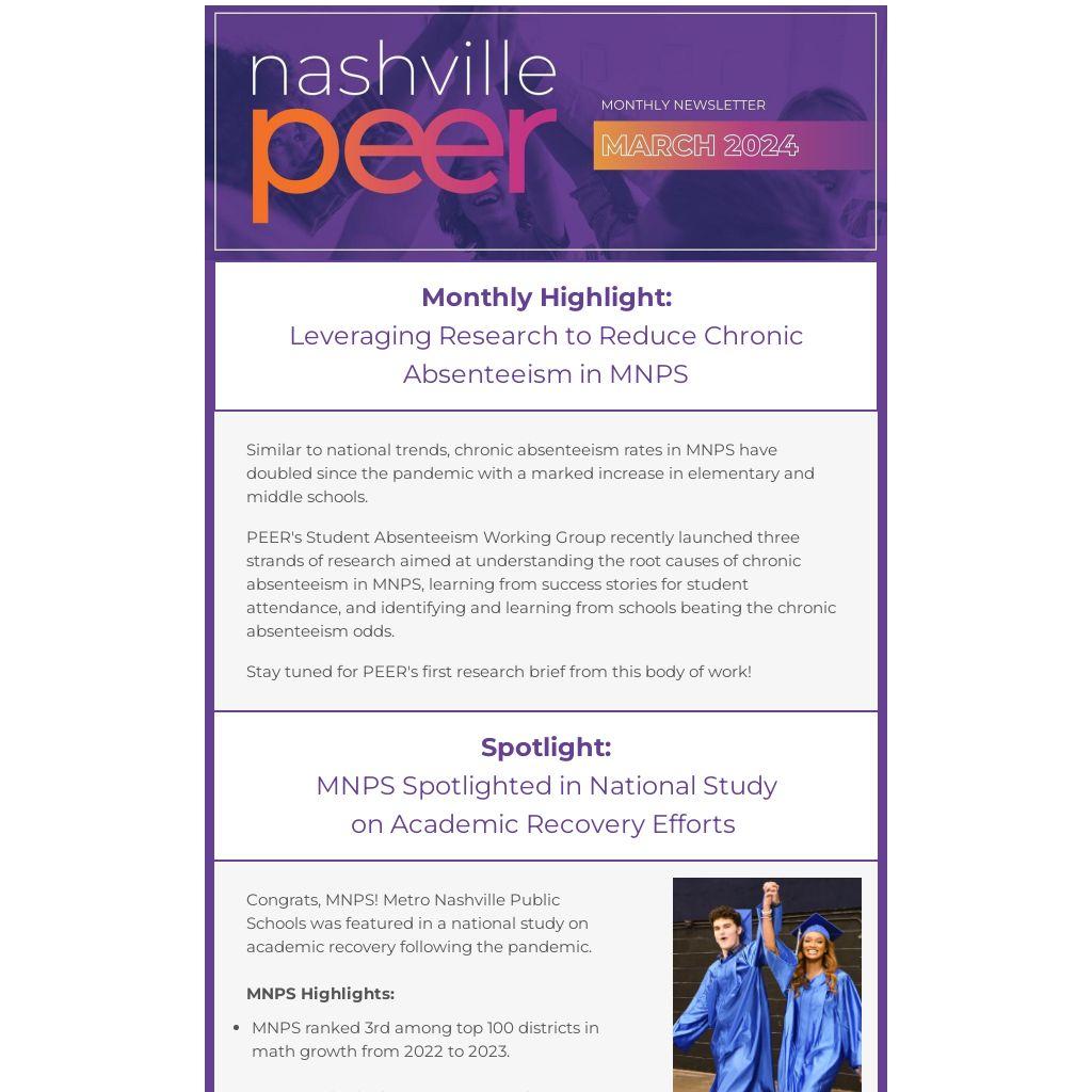 PEER's Student Absenteeism Working Group recently launched three strands of research aimed at understanding the root causes of chronic absenteeism in MNPS, learning from success stories for student attendance, and identifying and learning from schools beating the chronic absenteeism odds.