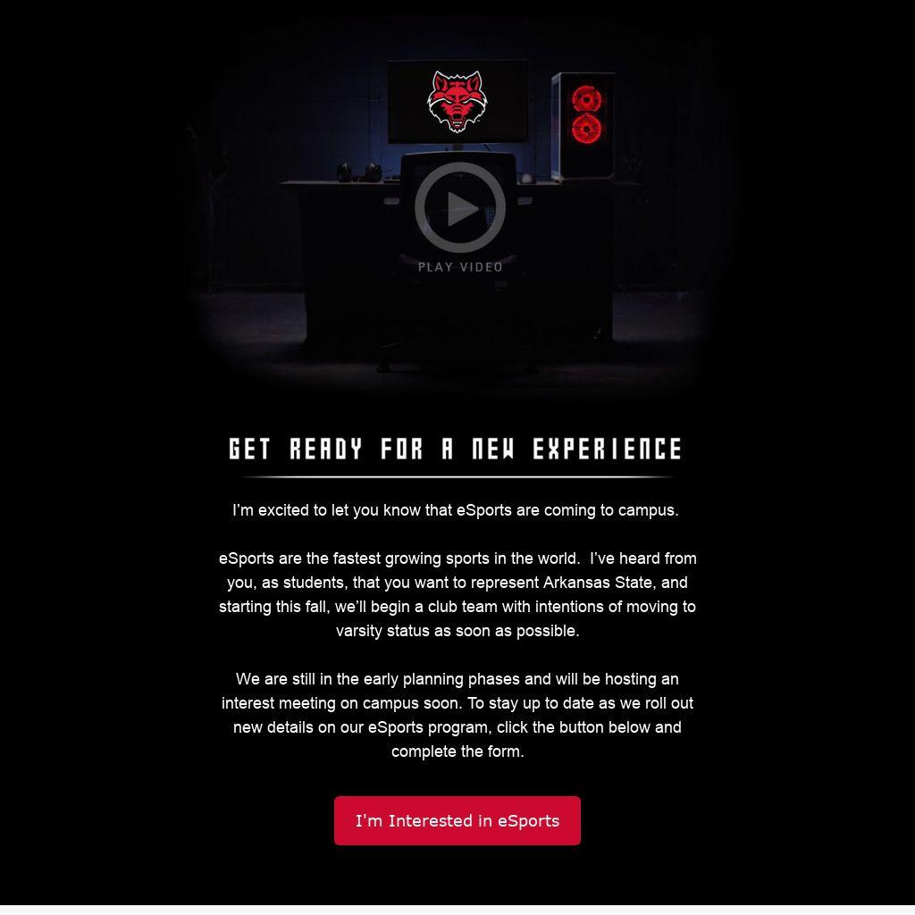 eSports are the fastest growing sports in the world. I’ve heard from you, as students, that you want to represent Arkansas State, and starting this fall, we’ll begin a club team with intentions of moving to varsity status as soon as possible.