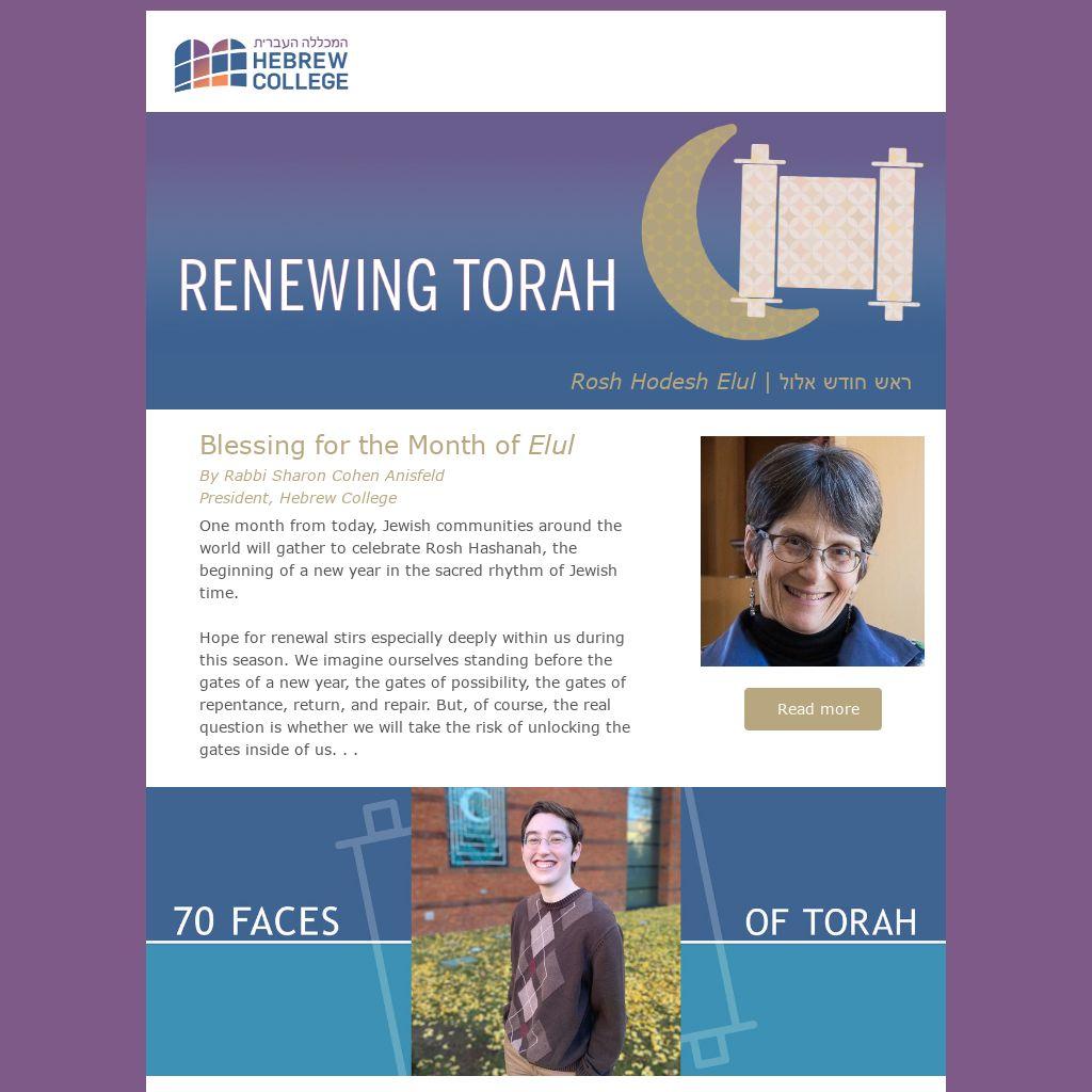 Jewish tradition teaches that as we walk the winding path of teshuvah (return and renewal) during the High Holy Day season, it is wise to do so with fellow seekers. To help guide your steps, the faculty, alumni, and students of Hebrew College created a High Holiday Companion—a collection of reflections on the prayers, scriptural readings, and sacred practices of Rosh Hashanah and Yom Kippur. We hope this booklet will help illuminate the way into the High Holiday liturgy and these sacred days of return and renewal.