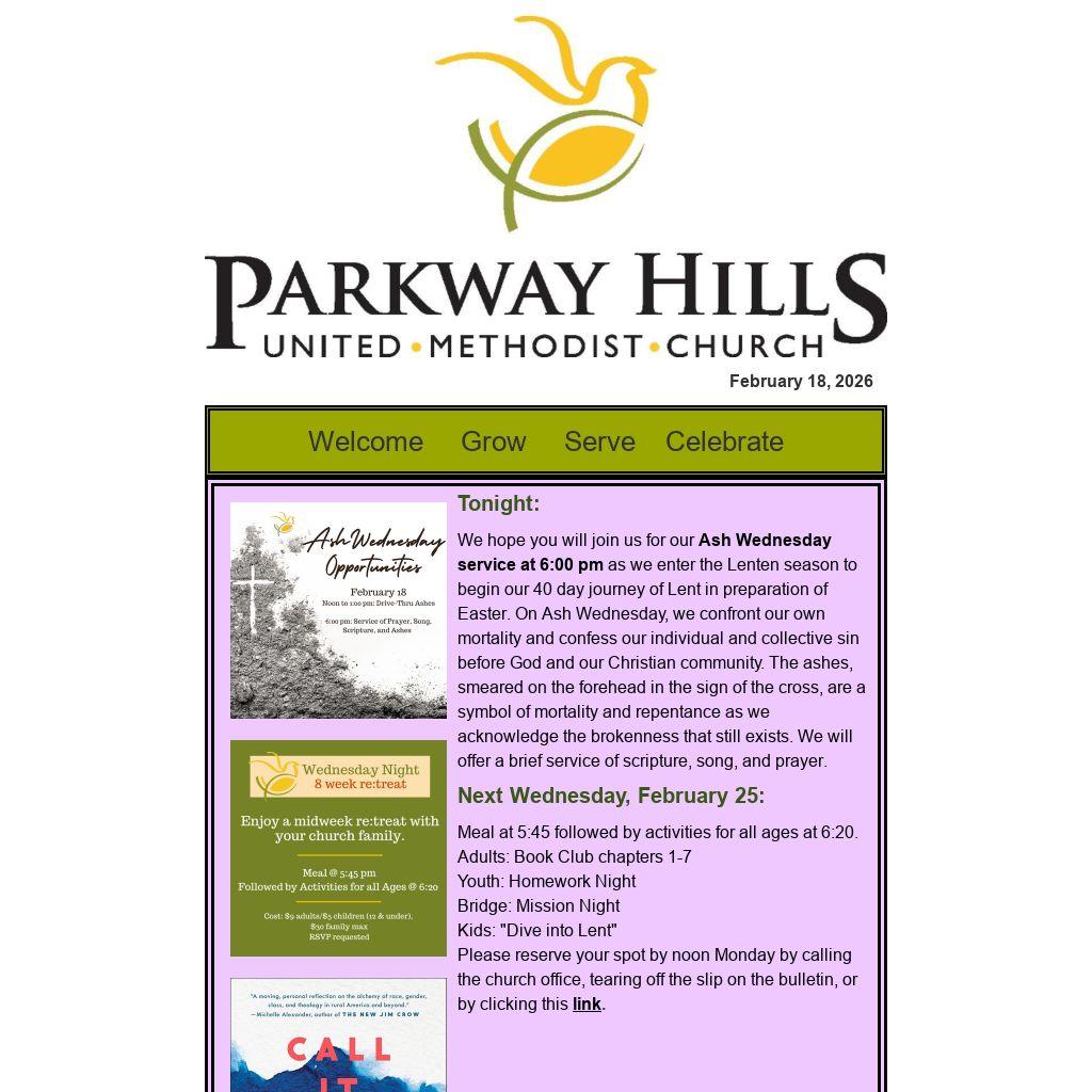 Recently we celebrated 30 years of ministry at Parkway Hills UMC. Thirty years of worship, small groups, service, and celebratory meals together. Unfortunately, with such milestone moments,comes needed building repair and maintenance. As we prepared our 2026 budget, we included $60,000 to aid with repairing the steeples in both our buildings. This is in addition to $30,000 budgeted for routine building and maintenance needs that arise throughout the year. We know this will require some extra fundraising throughout the year so as not to run a deficit budget. With your help, through an estimate of giving towards the 2026 budget, a gift toward building projects, or both, we can achieve our goal, make our needed building repairs, and fully fund our 2026 budget.