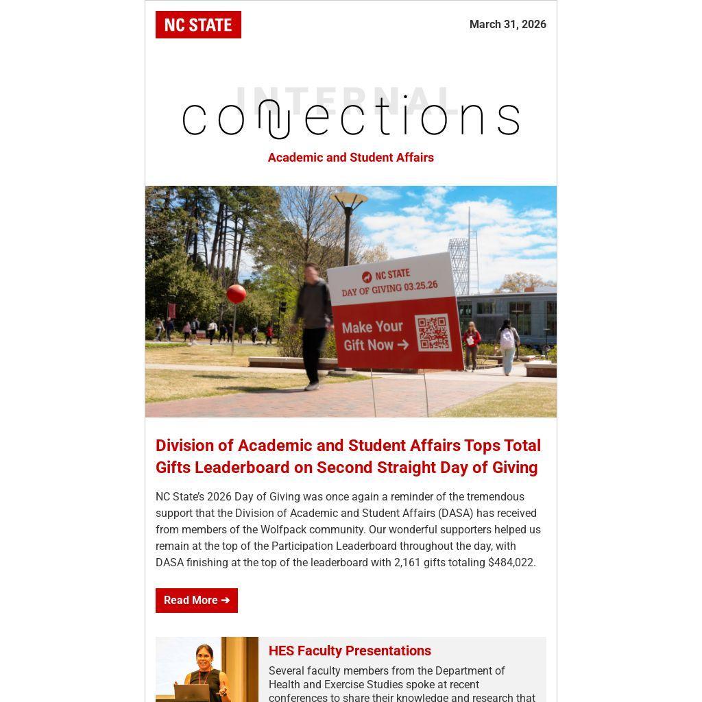 | March 31, 2026 | | | | | | | Division of Academic and Student Affairs Tops Total Gifts Leaderboard on Second Straight Day of Giving | | |