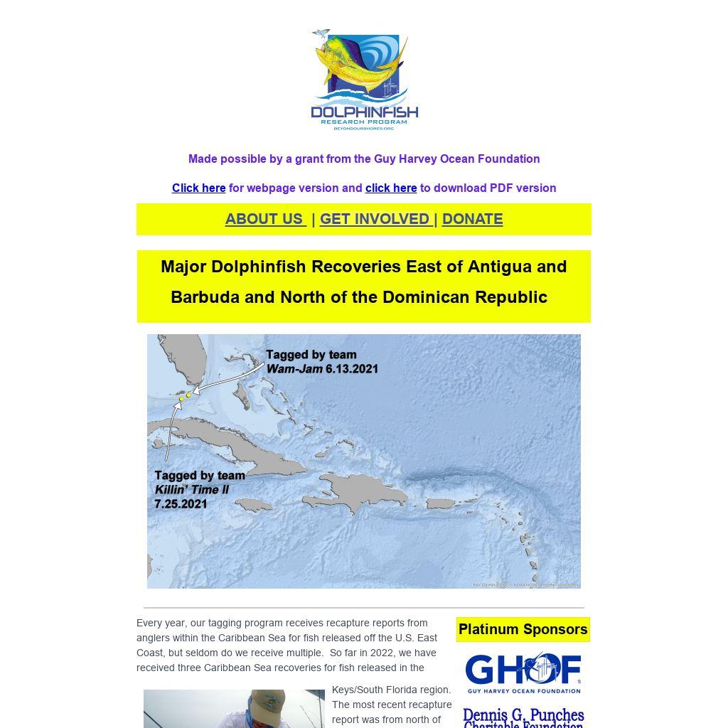 details specific scientific results generated by angler participation, extensively catalogs angler participation and milestones, and identifies new studies, strategies, and initiatives to implement as we move forward to advance our understanding of dolphinfish and provide the necessary data to ensure the long-term conservation of this critically important offshore game fish species. Click here to read the article.