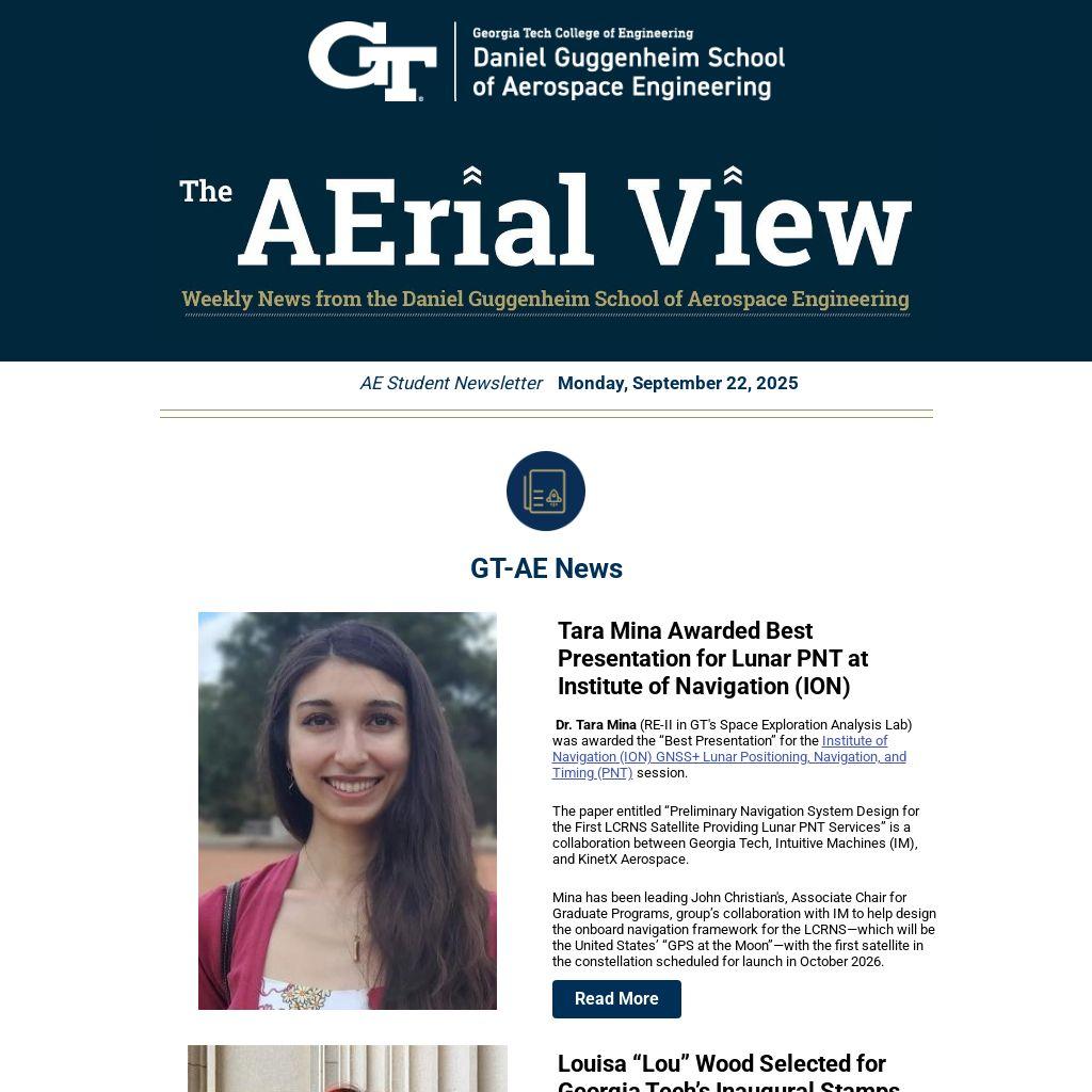 Dr. Tara Mina (RE-II in GT's Space Exploration Analysis Lab) was awarded the “Best Presentation” for the Institute of Navigation (ION) GNSS+ Lunar Positioning, Navigation, and Timing (PNT) session.