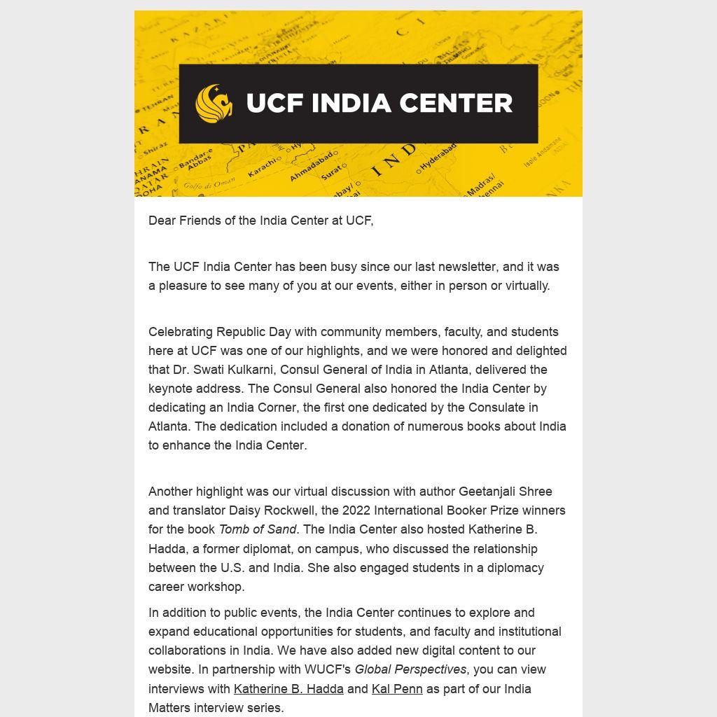 The UCF India Center has been busy since our last newsletter, and it was a pleasure to see many of you at our events, either in person or virtually.