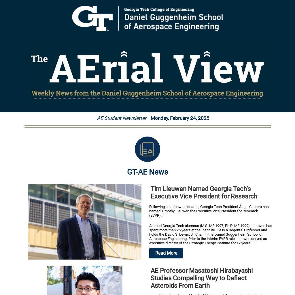 AE undergraduate and graduate students can meet with mentors (virtually) to gain insight and ask questions about career exploration, Georgia Tech, and more! Ā Email mentor@ae.gatech.edu if you need assistance scheduling with your preferred mentor.
