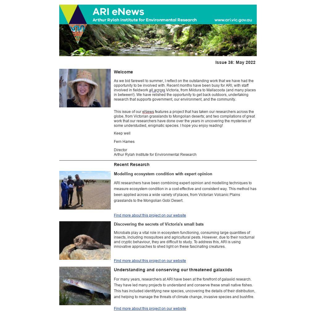 If you know someone who may like to receive the ARI eNews, forward this email on using the 'Share this' option at the top. If this has been forwarded on to you there is an option to sign-up below, or use the ‘Subscribe’ button on our website, or email research.ari@delwp.vic.gov.au to be added to the ARI eNews mailing list.