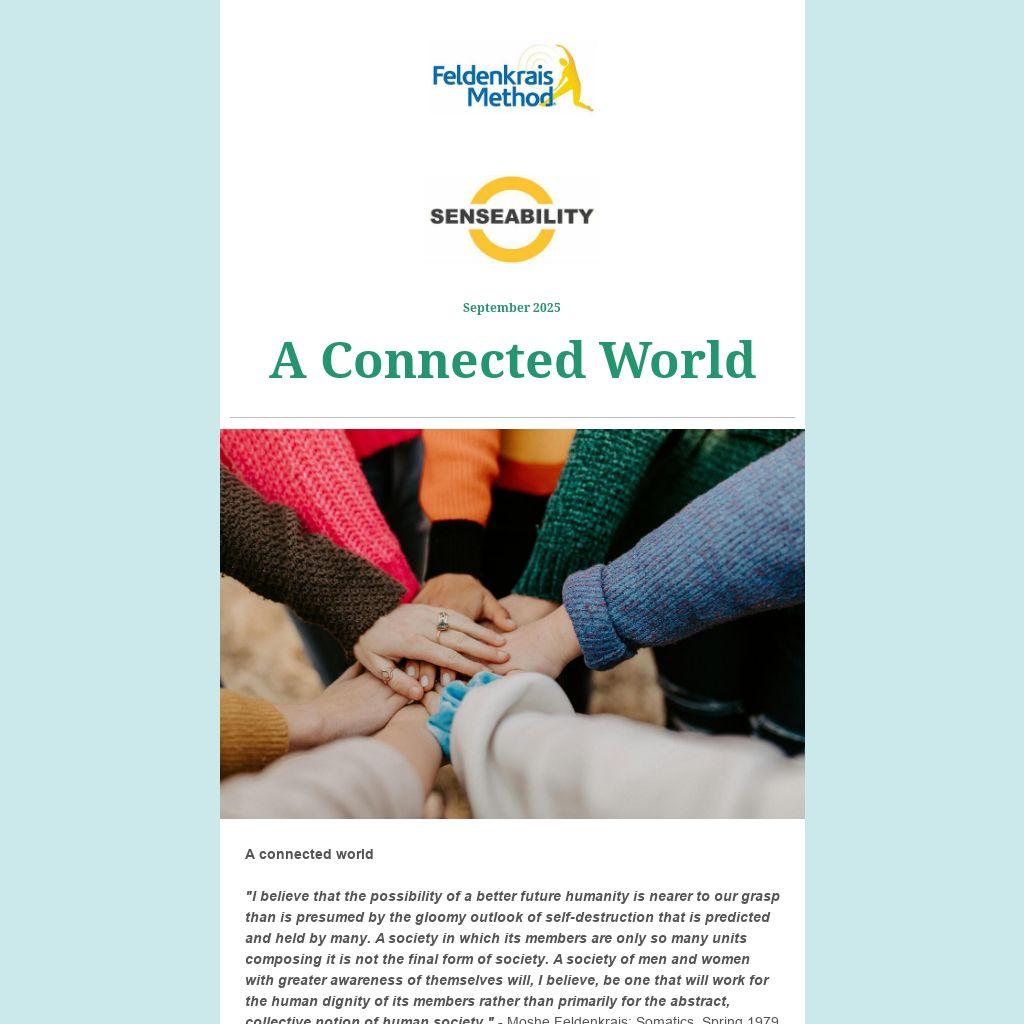 "I believe that the possibility of a better future humanity is nearer to our grasp than is presumed by the gloomy outlook of self-destruction that is predicted and held by many. A society in which its members are only so many units composing it is not the final form of society. A society of men and women with greater awareness of themselves will, I believe, be one that will work for the human dignity of its members rather than primarily for the abstract, collective notion of human society." - Moshe Feldenkrais: Somatics, Spring 1979