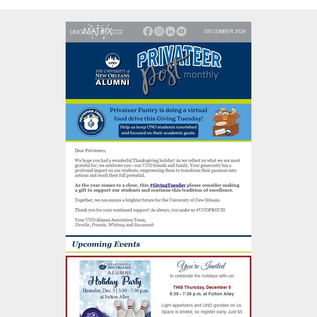 We hope you had a wonderful Thanksgiving holiday! As we reflect on what we are most grateful for, we celebrate you—our UNO friends and family. Your generosity has a profound impact on our students, empowering them to transform their passions into actions and reach their full potential.