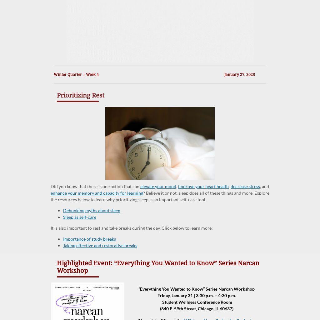 Please join CSL and the UChicago Harm Reduction Project, a Recognized Student Organization, for a workshop on the safe and effective use of Naloxone (Narcan) as a harm reduction and overdose prevention technique. RSVP here!