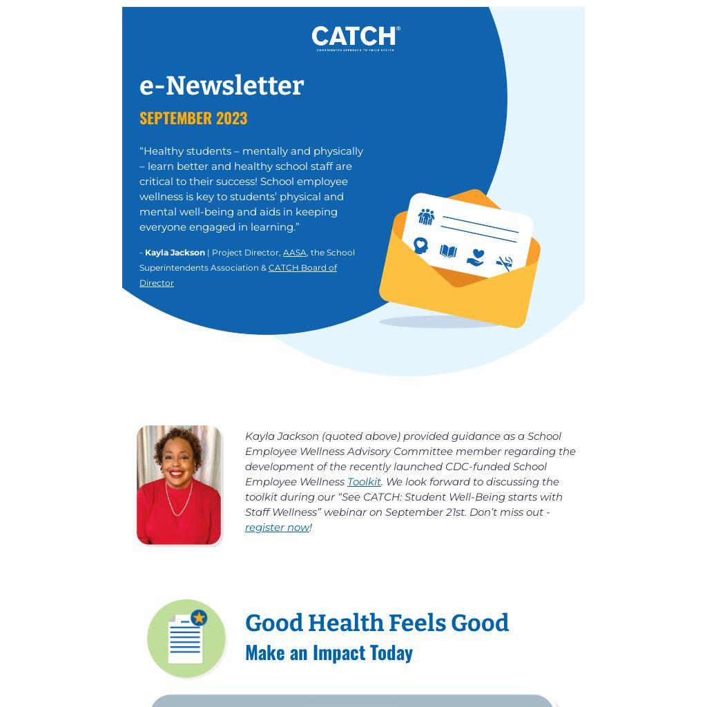 Kayla Jackson (quoted above) provided guidance as a School Employee Wellness Advisory Committee member regarding the development of the recently launched CDC-funded School Employee Wellness Toolkit. We look forward to discussing the toolkit during our “See CATCH: Student Well-Being starts with Staff Wellness” webinar on September 21st. Don’t miss out - register now!