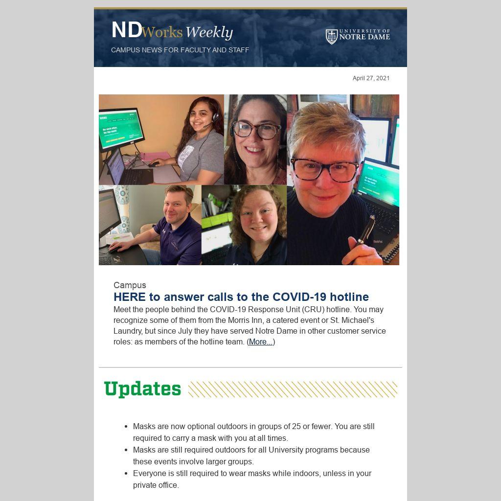 "The Notre Dame tradition and community remain strong and true no matter the circumstances. The strength that allows us to persevere comes from the unity of the Notre Dame family." — Devin Diggs '22, president of The Shirt Committee