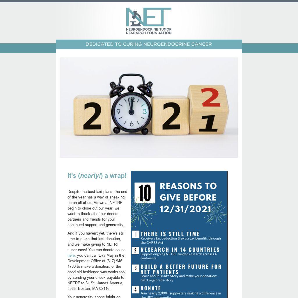 NETRF is tremendously grateful to Elizabeth and all her supporters for their outstanding fundraising.