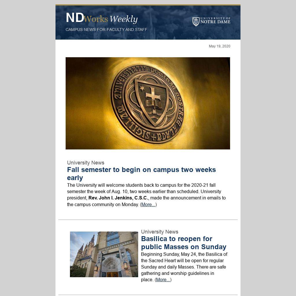 Under the direction of the Office of the Provost, teams from Notre Dame Studios, Marketing Communications (Multimedia and Print), Strategic Content, Media Relations and University Enterprises and Events provided the memorable experience. (See below.)