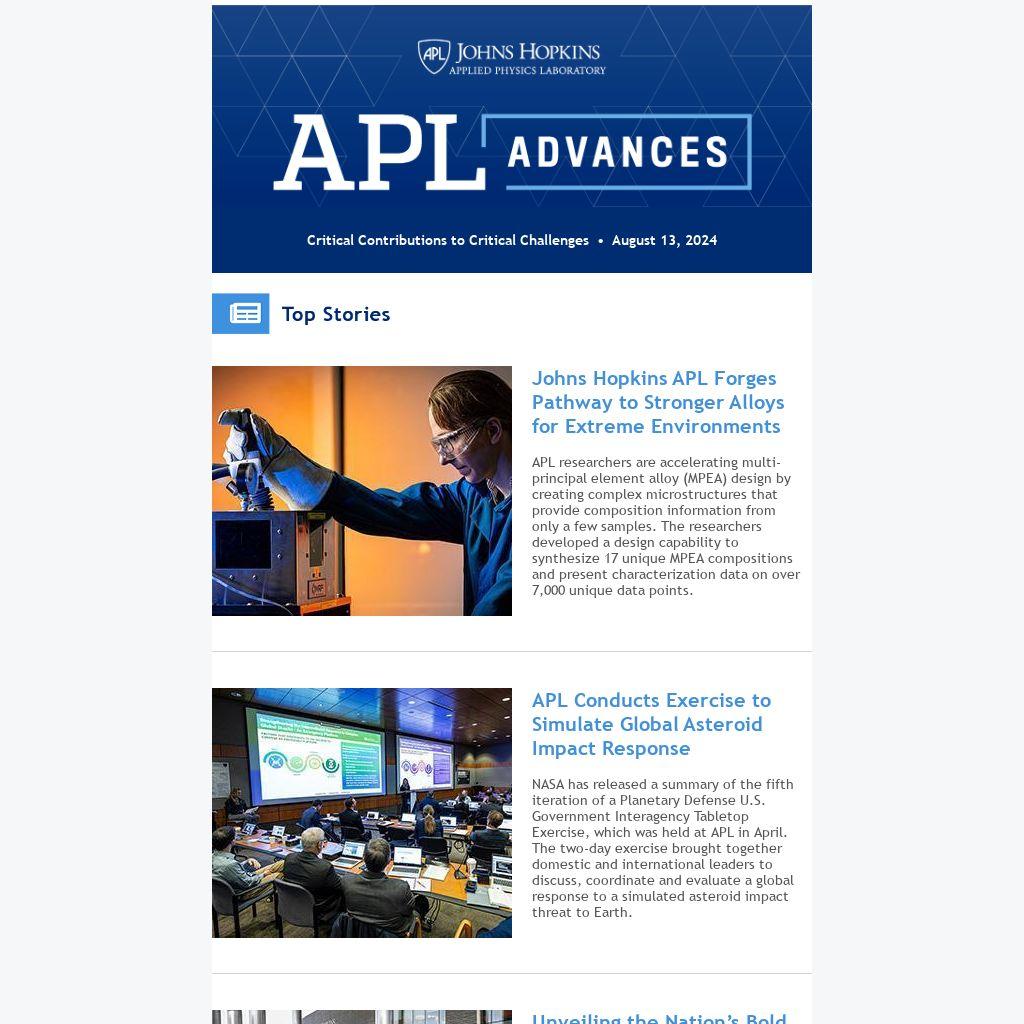Johns Hopkins APL Forges Pathway to Stronger Alloys for Extreme Environments