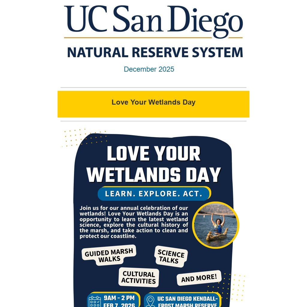 Love Your Wetlands Day is co-hosted by UC San Diego Natural Reserve System and the San Diego Bird Alliance in partnership with the Tijuana River National Estuarine Research Reserve and the City of San Diego.