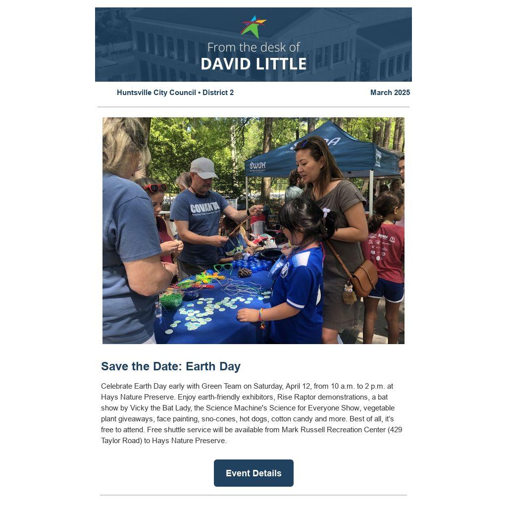 March 13: City Council Meeting, 5:30 p.m., Huntsville City Hall