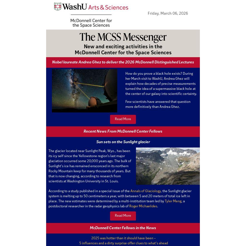 Nobel laureate Andrea Ghez to deliver the 2026 McDonnell Distinguished Lectures
