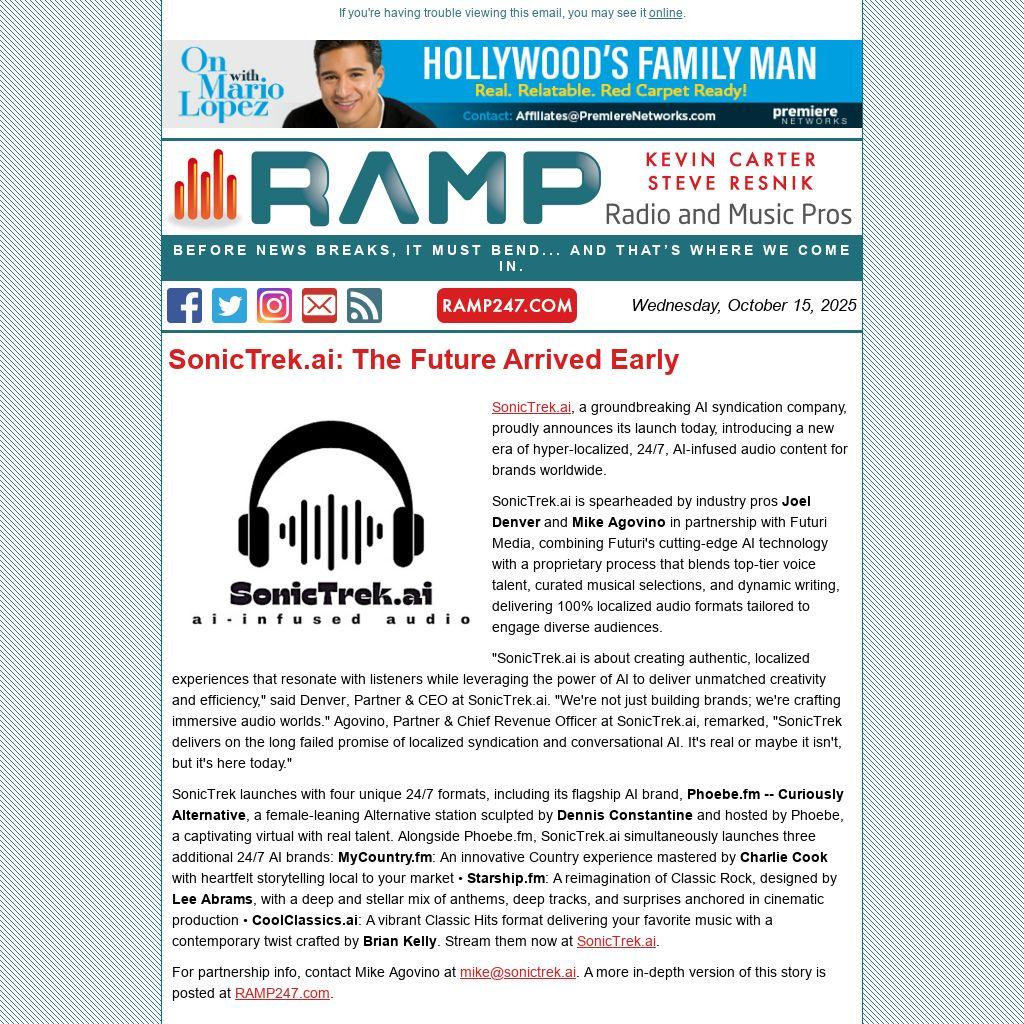 For partnership info, contact Mike Agovino at mike@sonictrek.ai. A more in-depth version of this story is posted at RAMP247.com.