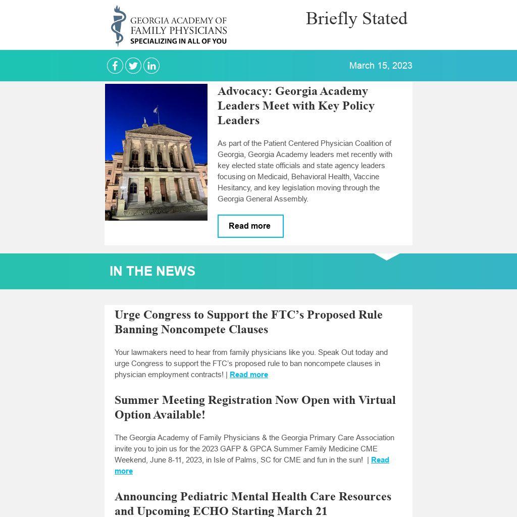 Copyright 2023 Georgia Academy of Family Physicians To ensure that e-mails from GAFP are delivered to your inbox, please add gafp@gafp.org to your address book or list of approved senders.