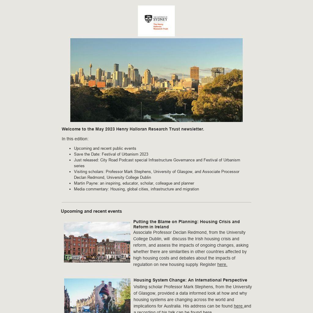 Welcome to the May 2023 Henry Halloran Research Trust newsletter.