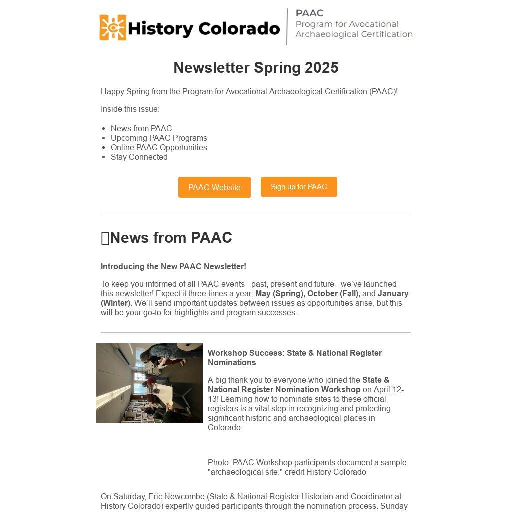 Have questions? Contact us at hc_publicarchaeology@state.co.us. You can also find contact information for PAAC staff, volunteers, and CAS Local PAAC Coordinators on our website's Contact Us page.