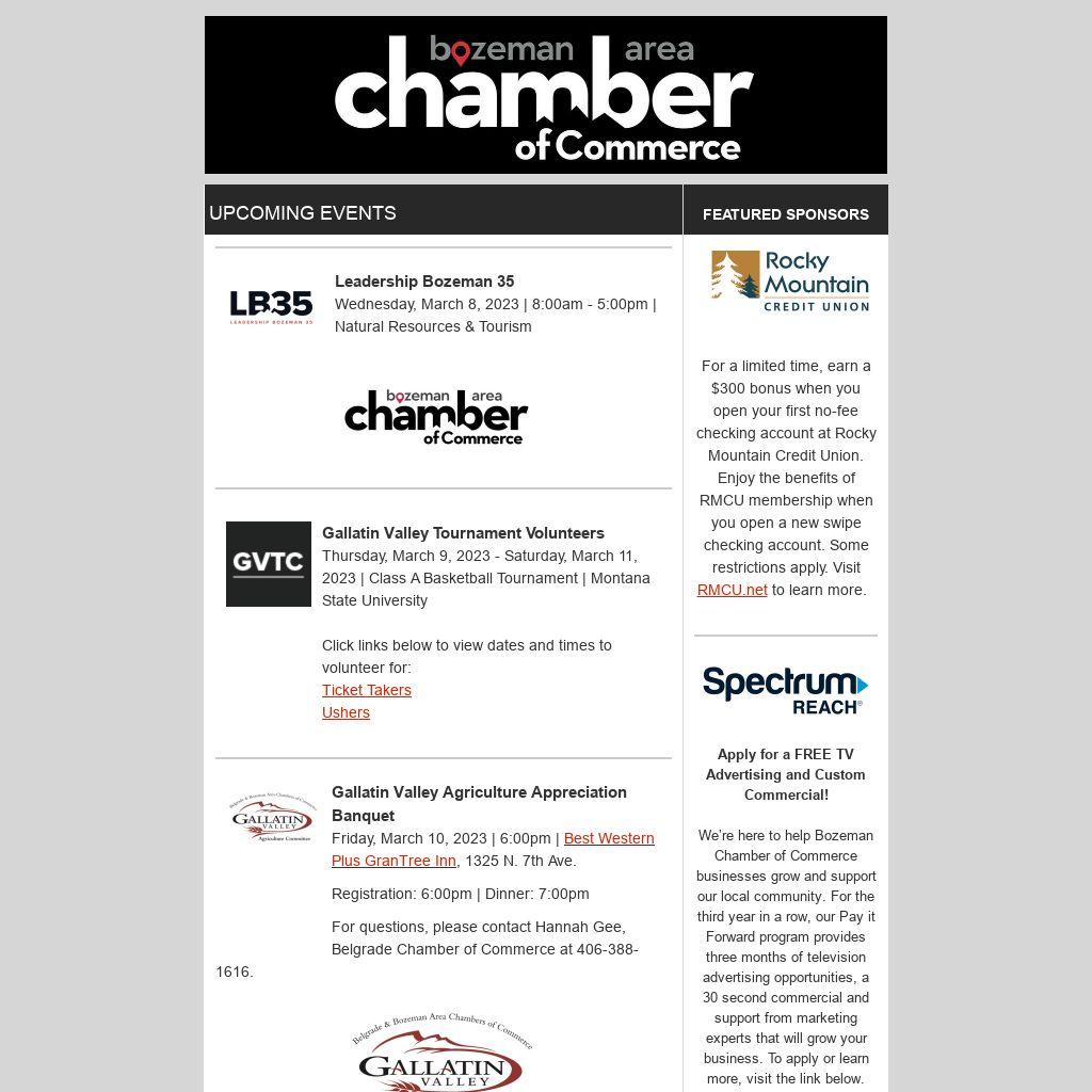 We’re here to help Bozeman Chamber of Commerce businesses grow and support our local community. For the third year in a row, our Pay it Forward program provides three months of television advertising opportunities, a 30 second commercial and support from marketing experts that will grow your business. To apply or learn more, visit the link below.