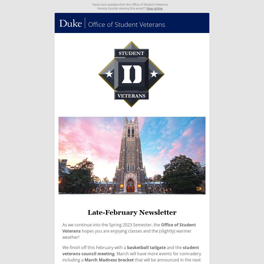As we continue into the Spring 2023 Semester, the Office of Student Veterans hopes you are enjoying classes and the (slightly) warmer weather!