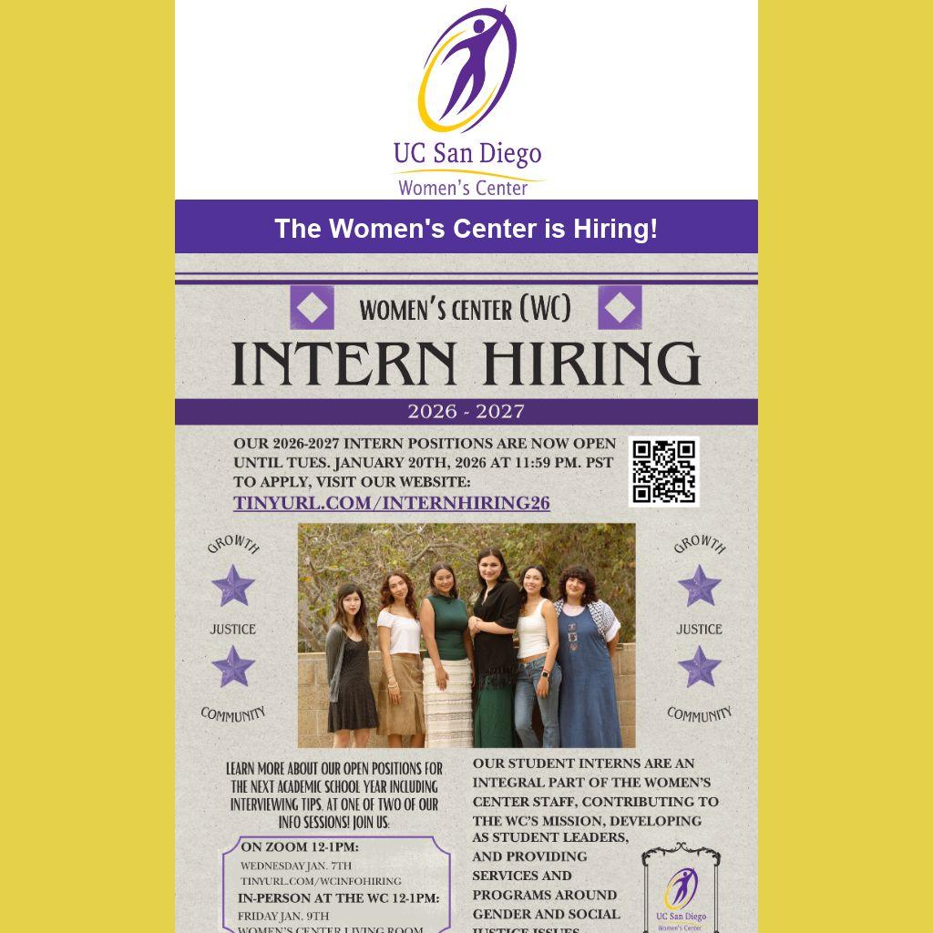 WC staff are available Monday-Friday. Contact women@ucsd.edu for assistance.