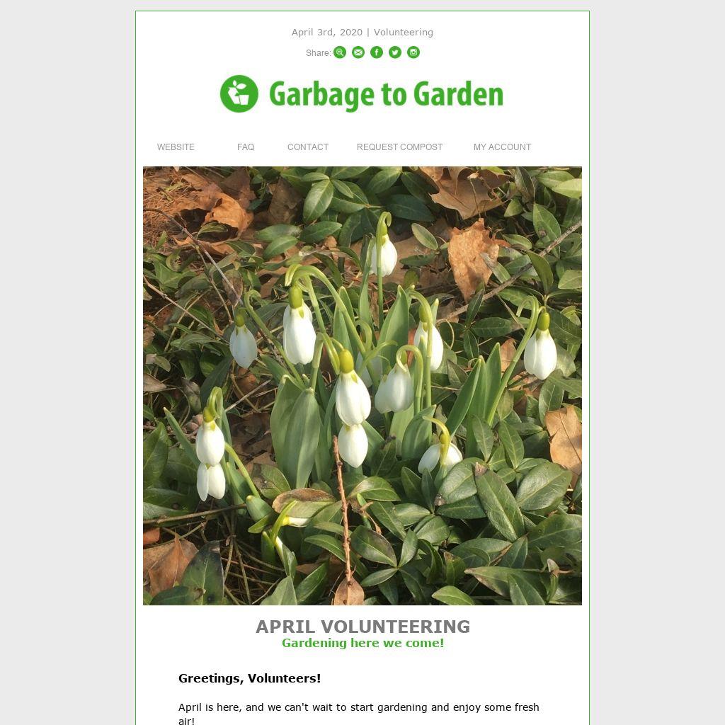 As always, to sign up for an event this month and receive a month of free Garbage to Garden service, RSVP by email, and we will help answer any questions you may have. Remember, events are first-come, first-serve.