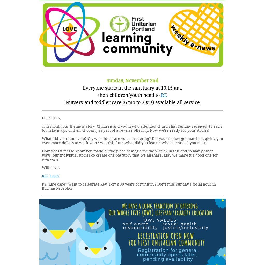 P.S. Like cake? Want to celebrate Rev. Tom's 30 years of ministry? Don't miss Sunday's social hour in Buchan Reception.