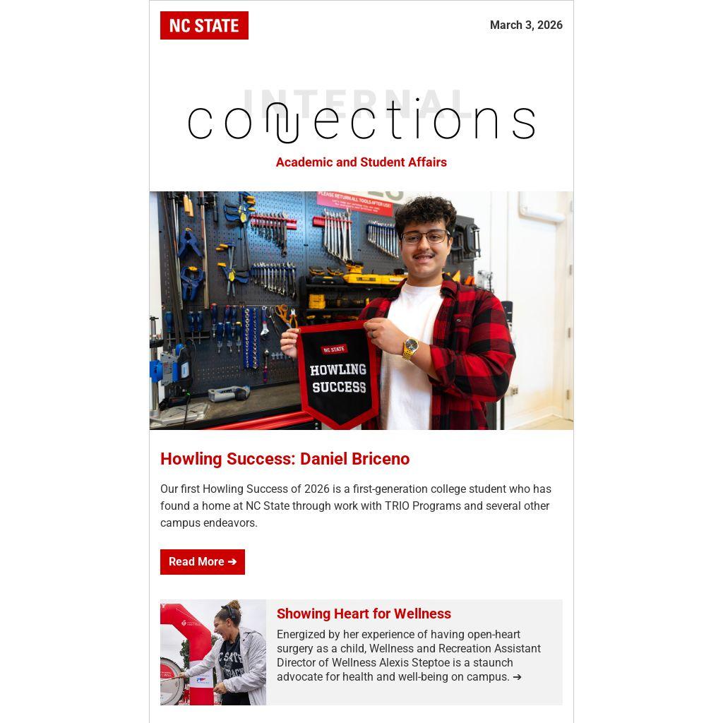 Our first Howling Success of 2026 is a first-generation college student who has found a home at NC State through work with TRIO Programs and several other campus endeavors.