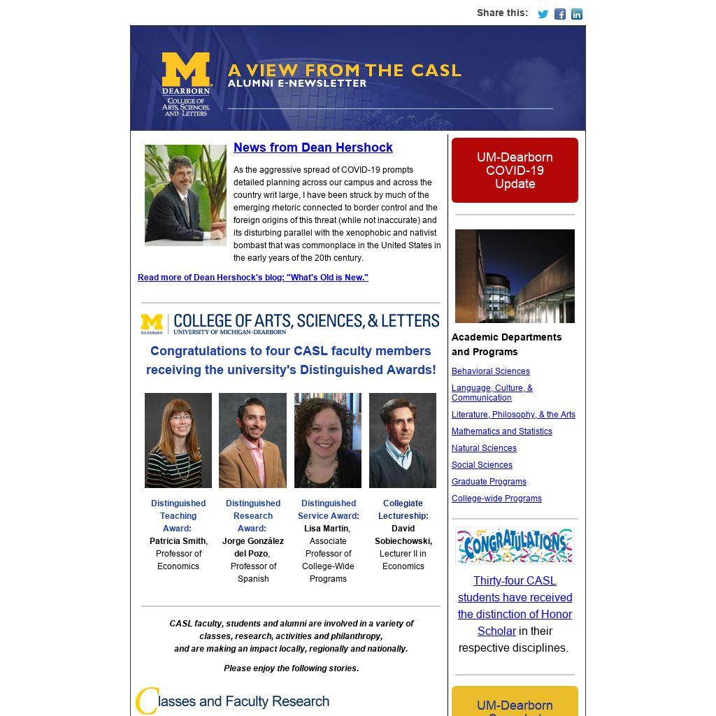 CASL faculty, students and alumni are involved in a variety of classes, research, activities and philanthropy, and are making an impact locally, regionally and nationally.