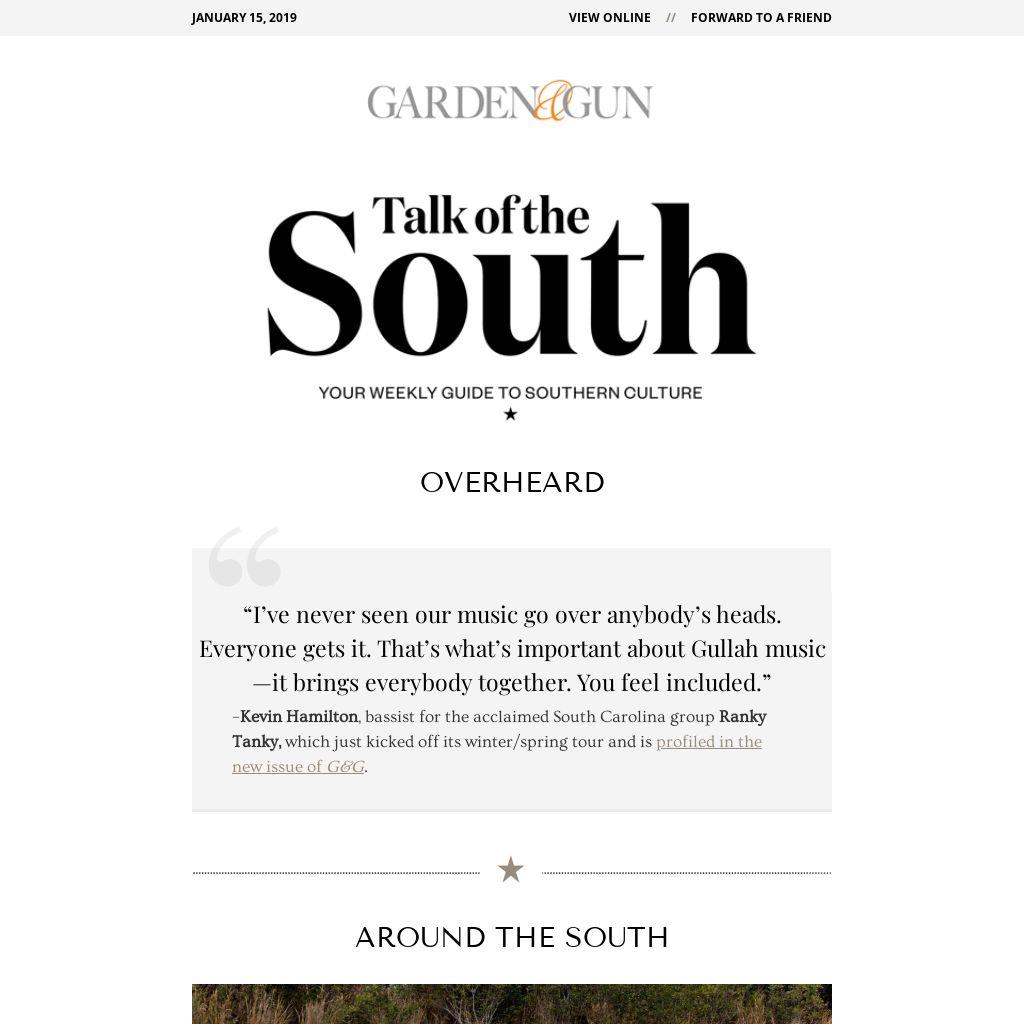 – Kevin Hamilton, bassist for the acclaimed South Carolina group Ranky Tanky, which just kicked off its winter/spring tour and is profiled in the new issue of G&G.