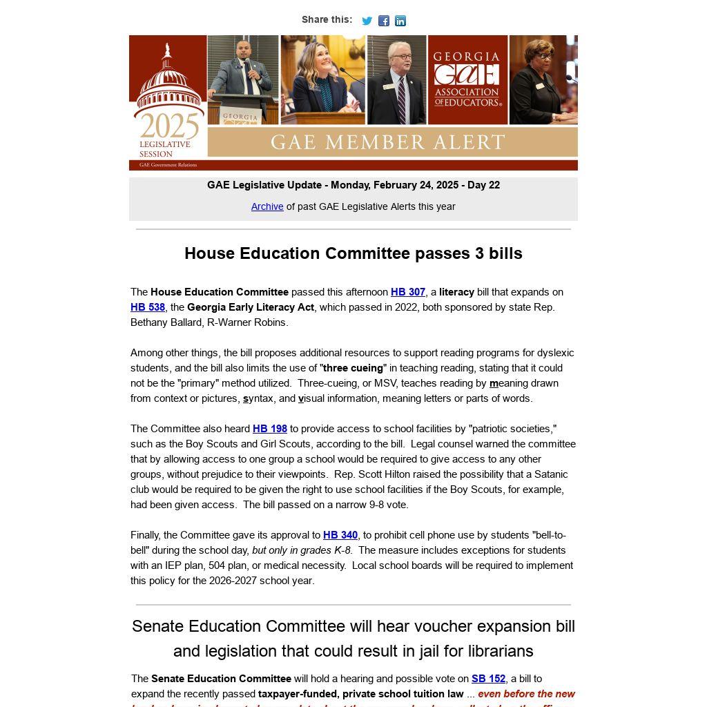 GAE Legislative Update - Monday, February 24, 2025 - Day 22