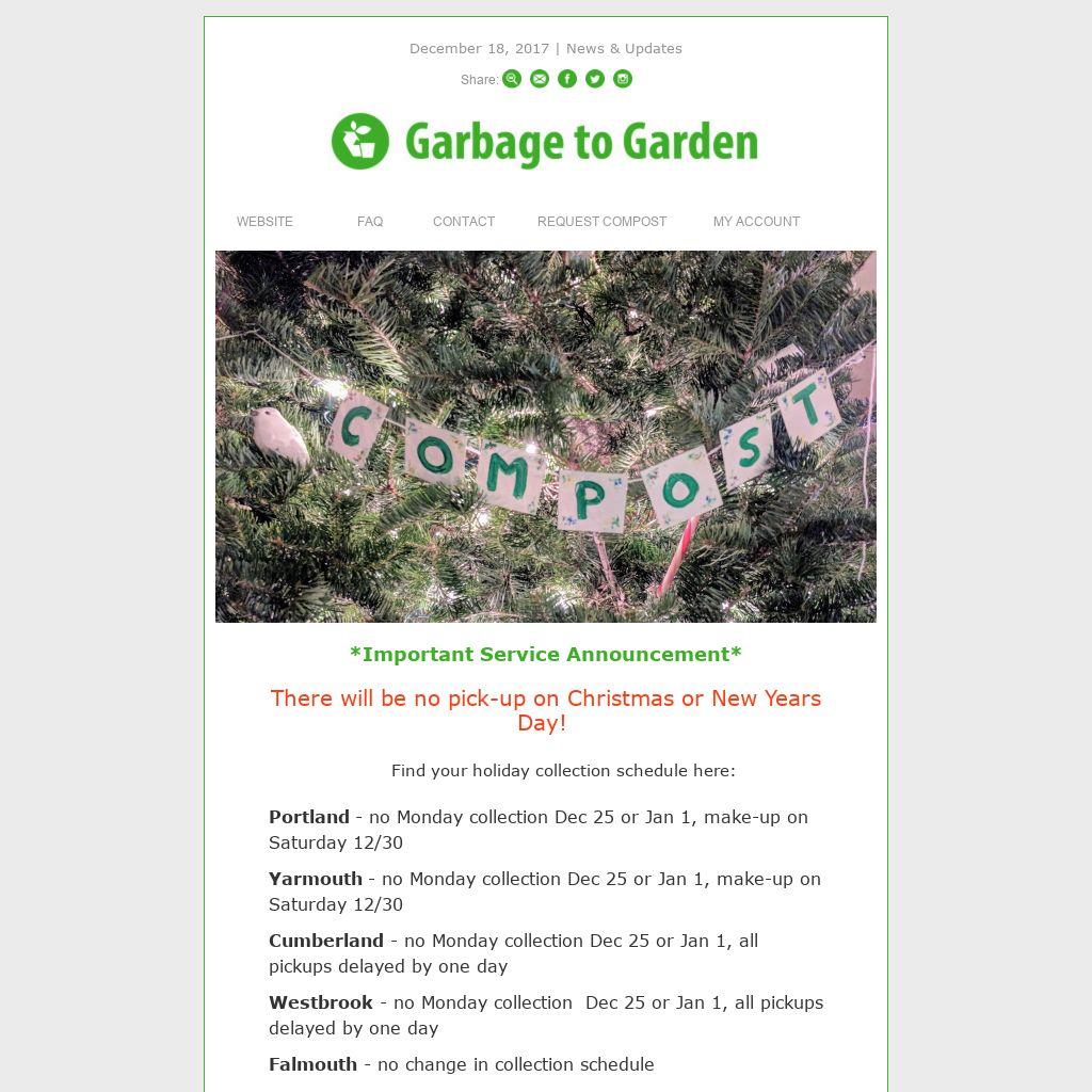 Yarmouth - no Monday collection Dec 25 or Jan 1, make-up on Saturday 12/30
