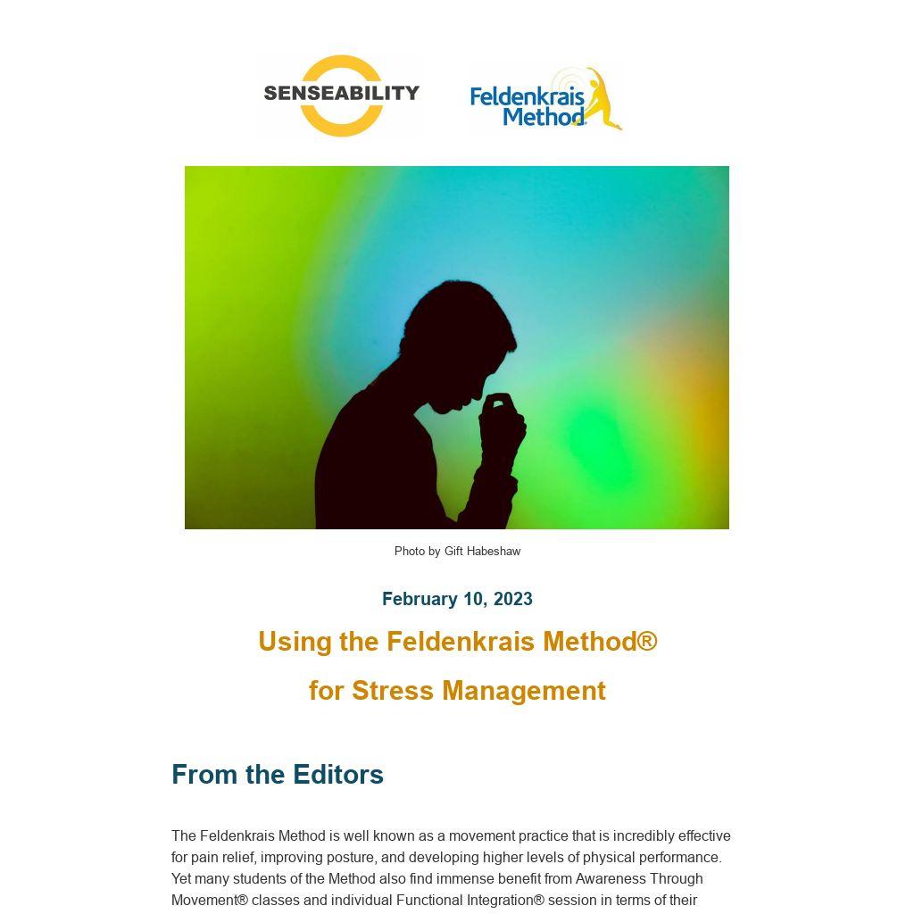 Long before the "Mindfulness Revolution" that is picking up steam today, Moshe Feldenkrais understood that our experiences of 'mind' and 'body' cannot be separated. This understanding is at the core of why so many people have found solutions for their difficulties by working with the Feldenkrais Method of somatic education after other approaches didn't help. A significant reason for this phenomenon might be that embedded within the way Feldenkrais® practitioners teach movement is a fresh orientation to how we relate to ourselves. This month's contributors zero in on this self-relationship as they highlight the ways that the Feldenkrais Method can support stress management.