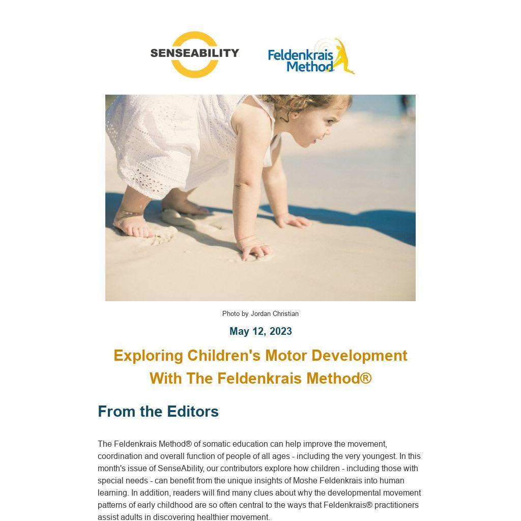 The Feldenkrais Method® of somatic education can help improve the movement, coordination and overall function of people of all ages - including the very youngest. In this month's issue of SenseAbility, our contributors explore how children - including those with special needs - can benefit from the unique insights of Moshe Feldenkrais into human learning. In addition, readers will find many clues about why the developmental movement patterns of early childhood are so often central to the ways that Feldenkrais® practitioners assist adults in discovering healthier movement.