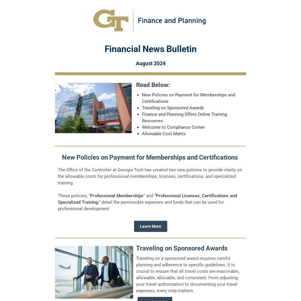 The Office of the Controller at Georgia Tech has created two new policies to provide clarity on the allowable costs for professional memberships, licenses, certifications, and specialized training.